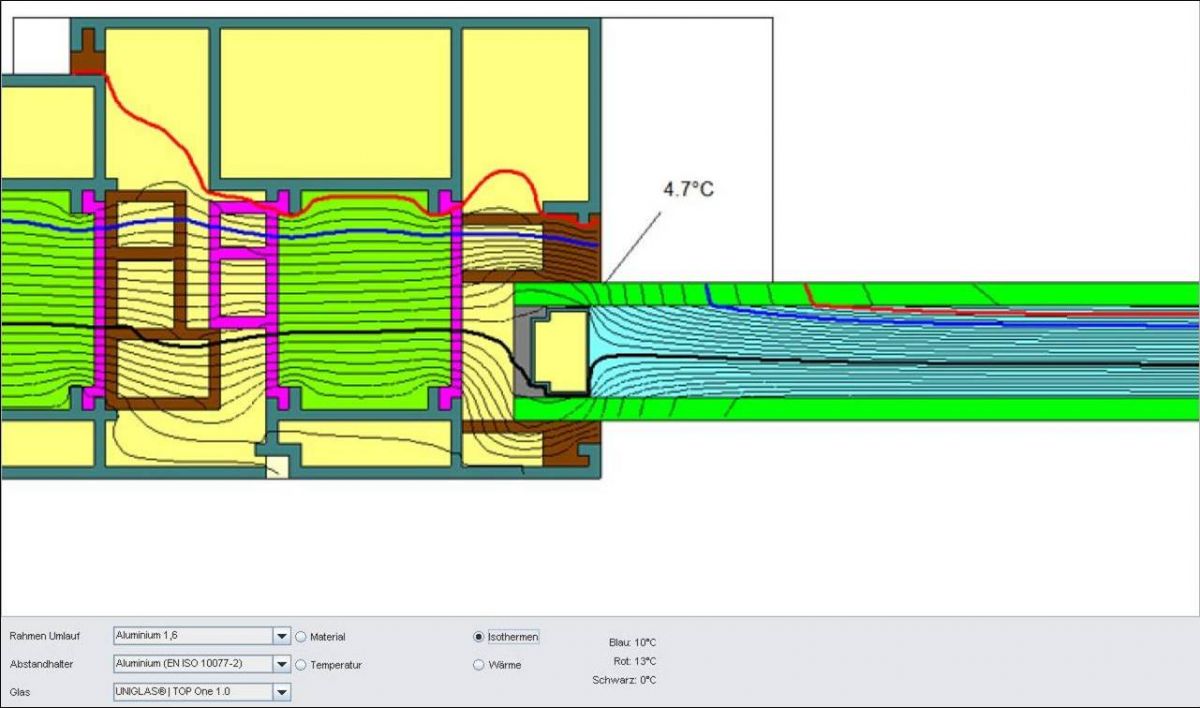 - Zusätzliche Beschreibung von Wärmestrom, der durch das Zusammenwirken von Rahmenprofil und Isolierglasrand, einschließlich durch den Einflusses der Abstandhalter, verursacht wird